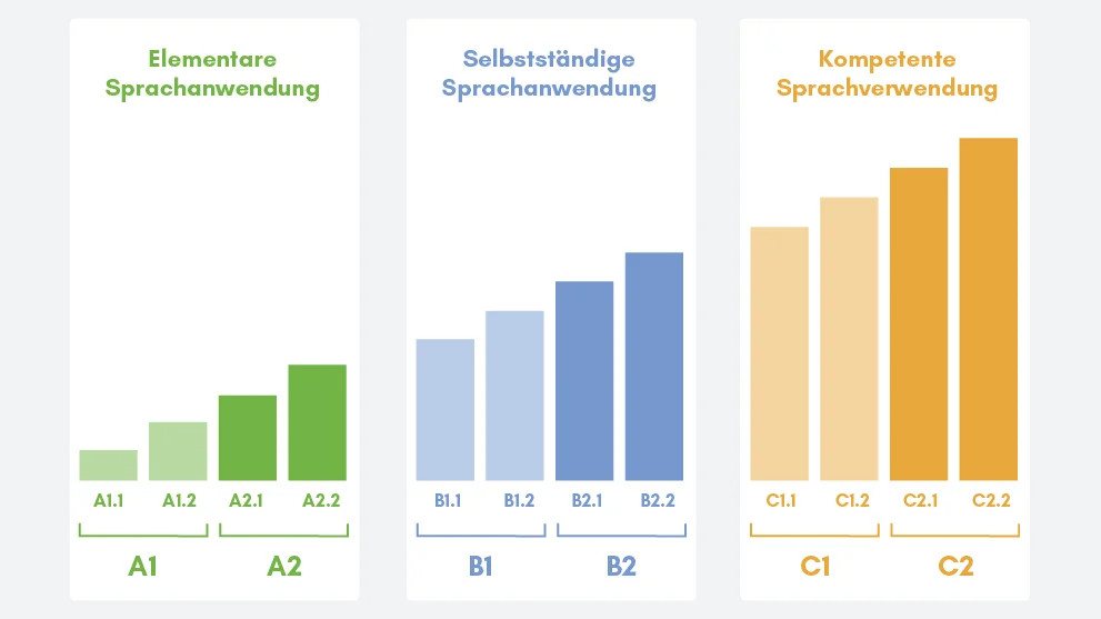 Er ist am bewährten 12-Stufen-Modell des Gemeinsamen Europäischen Referenzrahmens (GER) ausgerichtet. Mit dieser detaillierten Einstufung können wir Ihre Vorkenntnisse bestimmen und so den genau passenden Deutschkurs für Sie finden.